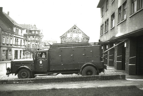 Werkstatt der Berufsfeuerwehr. Dieser RKW (Rüstkraftwagen) verfügte