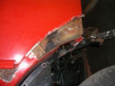 Kniestücke hinter den vorderen Kotflügeln. Hier half auch nur: abreissen